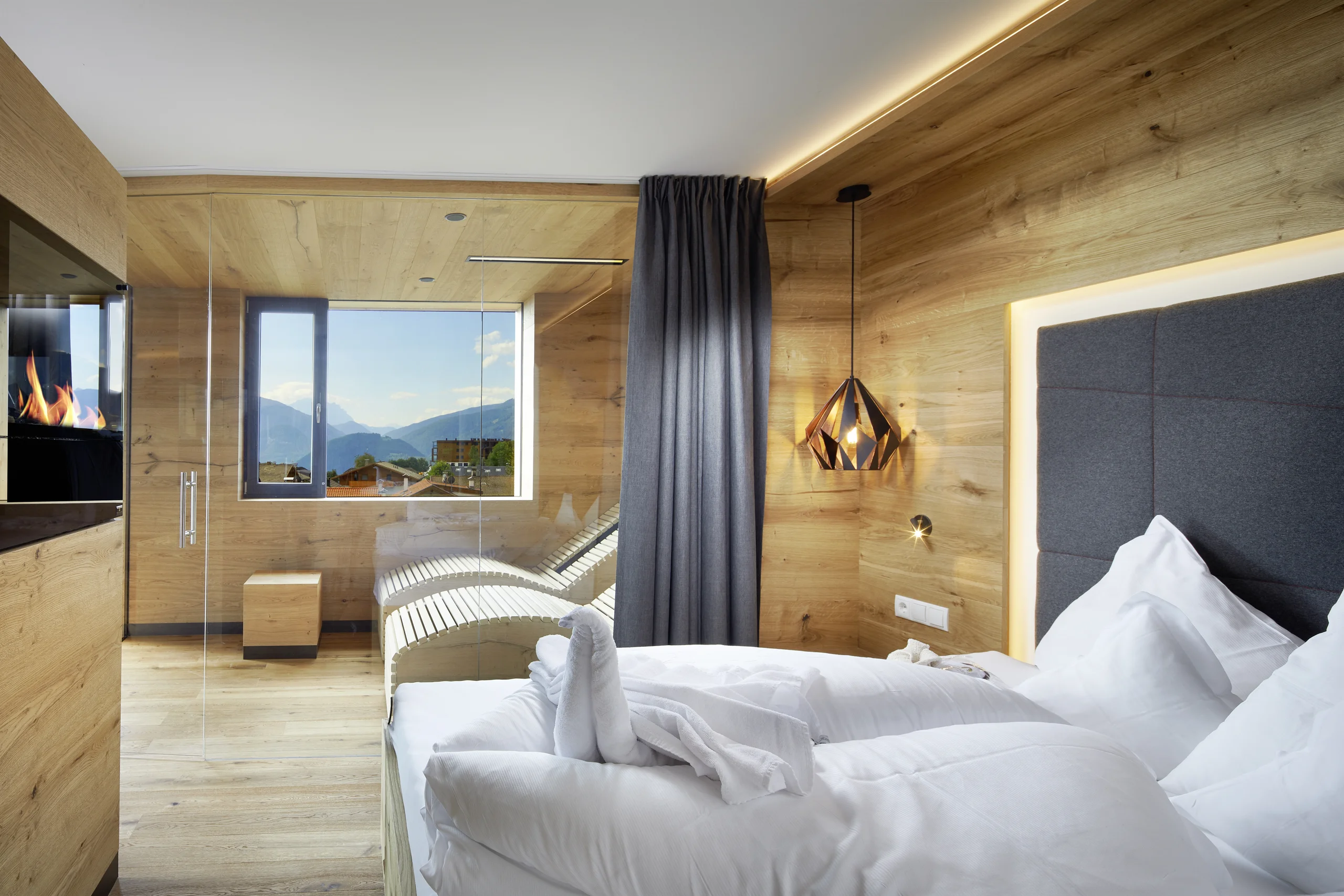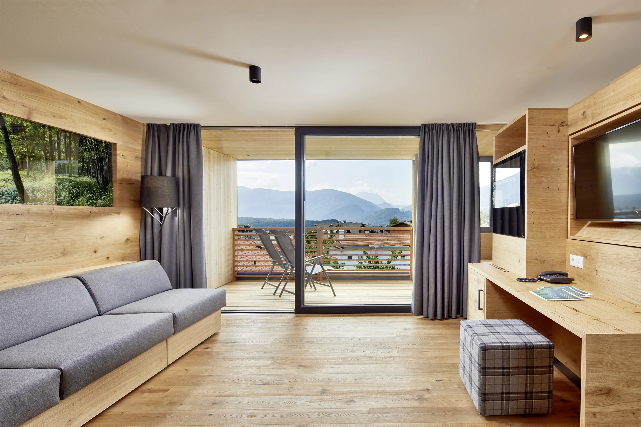 Wohlfühlzimmer in massivem Naturholz mit einzigartigem Blick auf die Dolomiten und das Pustertal. Das Zimmer ist in warmen Naturfarben gehalten und verfügt über eine komfortable Ausstattung: Sofa, Balkon aus Zirbelkiefernholz, 42" Flat-TV mit über 70 Kanälen inklusive Radio, WLAN, Kühlbox, Tresor für Ihre Wertsachen. Außerdem dürfen Sie sich auf ein schönes, großes Badezimmer mit Dusche, Föhn, Schminkspiegel, Badetasche mit Badetuch, Badeschlappen und kuscheligem Bademantel freuen. Das außergewöhnliche Die-Waldruhe-Design schafft eine unverwechselbare Atmosphäre im Zimmer Dolomiten de luxe.